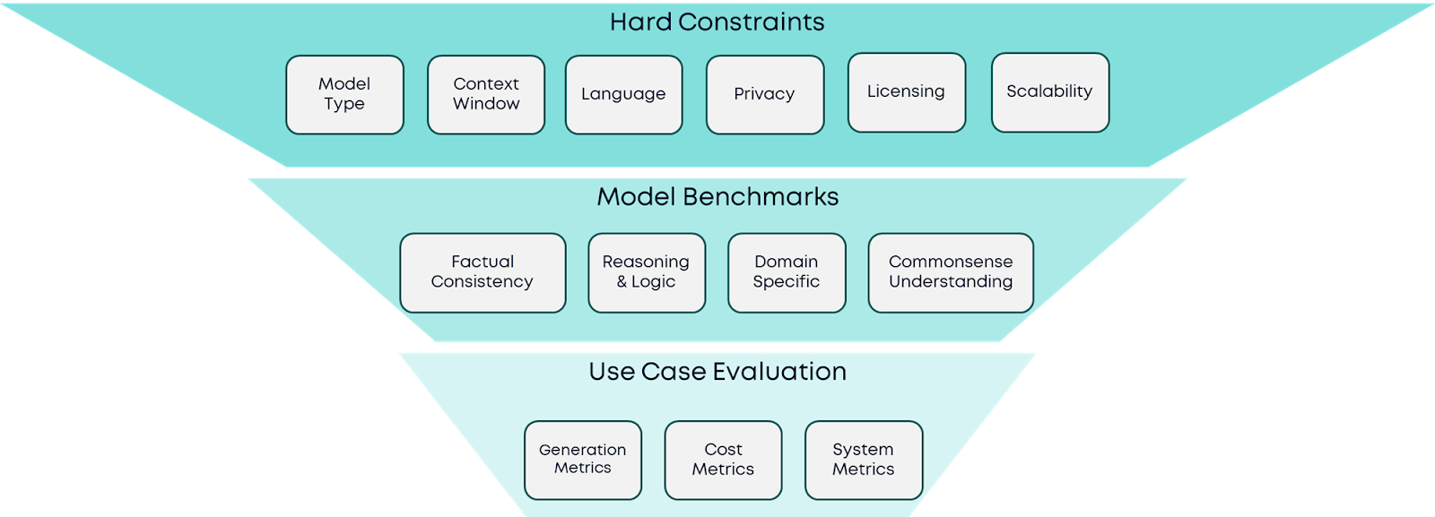 So, you read the first blog in our application planning series and decided to move forward with a Generative AI use case but are overwhelmed by the variety of Large Language Model (LLM) options. In fact, there are a plethora of LLMs out there including GPT-4.1, Claude 3.7 Sonnet, and Deep Seek R1, and it seems like new LLMs are being introduced almost every day. It can be difficult to know where to start and which particular LLM to choose for your use case. In this blog post, we aim to make this important decision less daunting by providing a step-by-step guide on how to evaluate and select the most suitable LLM.